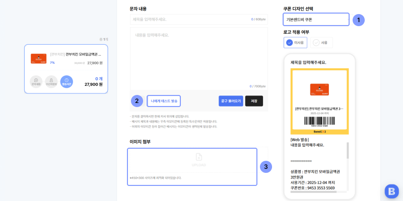 step 2. 문자 메세지 / 쿠폰 템플릿 / 로고 삽입 / 연락처 파일 업로드하기