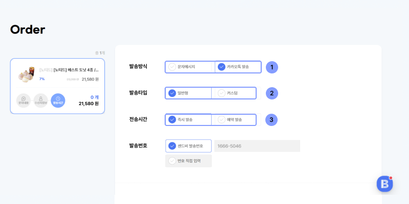 • 즉시 발송 – 구매한 즉시 바로 수신자에게 발송할 수 있는 기능