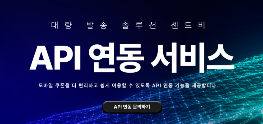 API 발송은 기업 자체 서비스와 센드비 쿠폰 핀을 연동해 고객이 특정 행동을 했을 때 자체 서비스에서 직접 쿠폰을 지급하는 구조입니다.
