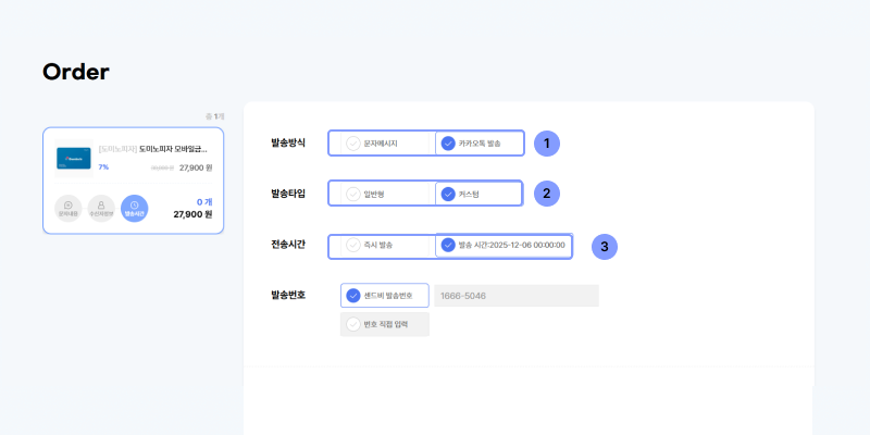 • 즉시 발송 – 구매한 즉시 바로 수신자에게 발송할 수 있는 기능