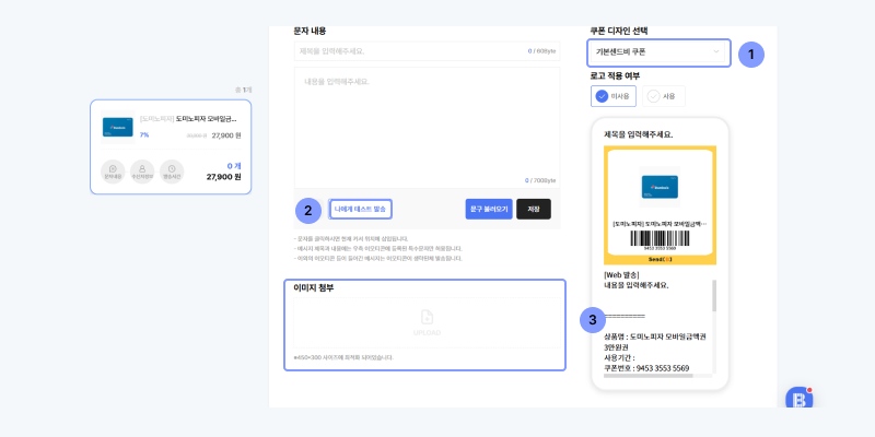 step 2. 문자 메세지 / 쿠폰 템플릿 / 로고 삽입 / 연락처 파일 업로드하기