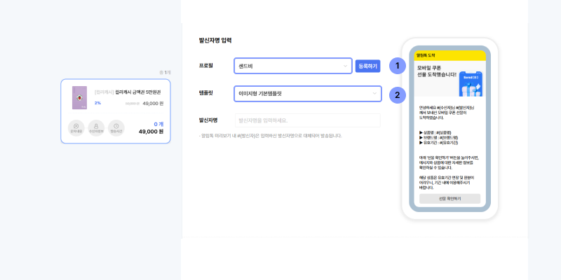 • 단, 별도로 등록하지 않을 경우, 센드비 카톡 채널로 모바일 쿠폰 발송됩니다.