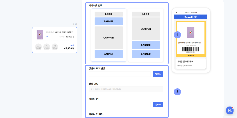 • 커스텀 형 – 쿠폰 레이아웃을 선택해서, 띠 배너를 자유롭게 커스텀 해 브랜딩을 할 수 있는 기능