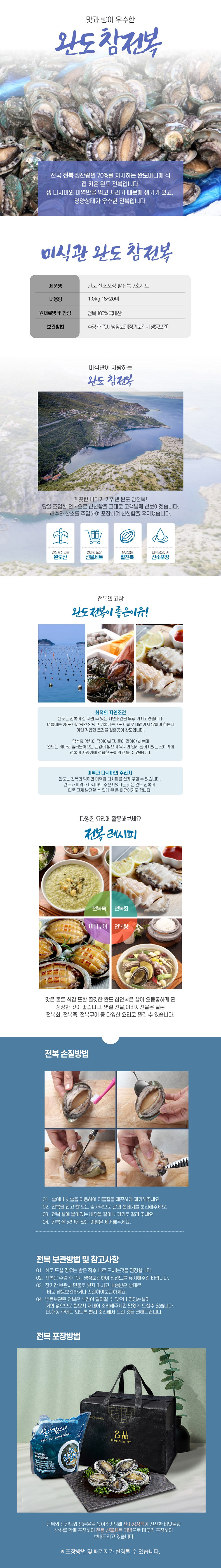 [미식관] 완도 산소포장 활전복 7호세트(1kg,18-20미)